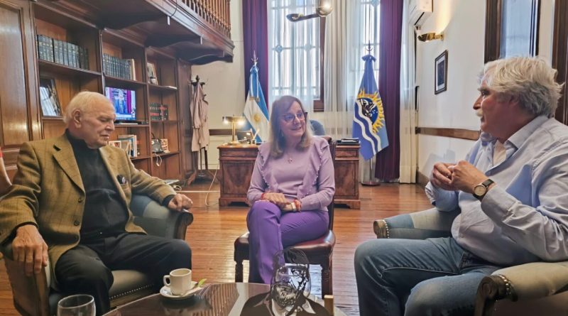 La senadora Alicia Kirchner recibió al hijo del historiador Osvaldo Bayer y al nieto del trabajador fusilado durante las huelgas obreras de 1920/21, Albino Argüelles. “El presidente con su discurso violento sería el autor intelectual de la destrucción del monumento en homenaje a las Huelgas Patagonicas”, resumió Esteban Bayer.