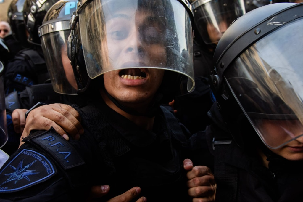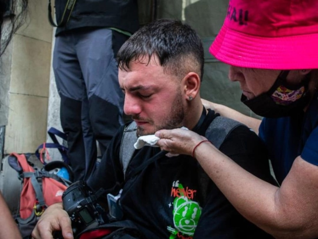 Se trata de Nehuen Rovediello, fotógrafo de la Agencia UNAR y que trabaja en forma freelance para distintos medios, quien recibió un ataque con gas pimienta en su rostro que le generó una fuerte irritación. Como consecuencia de ello, debió ser asistido por otros colegas y personas que se encontraban en el Congreso.