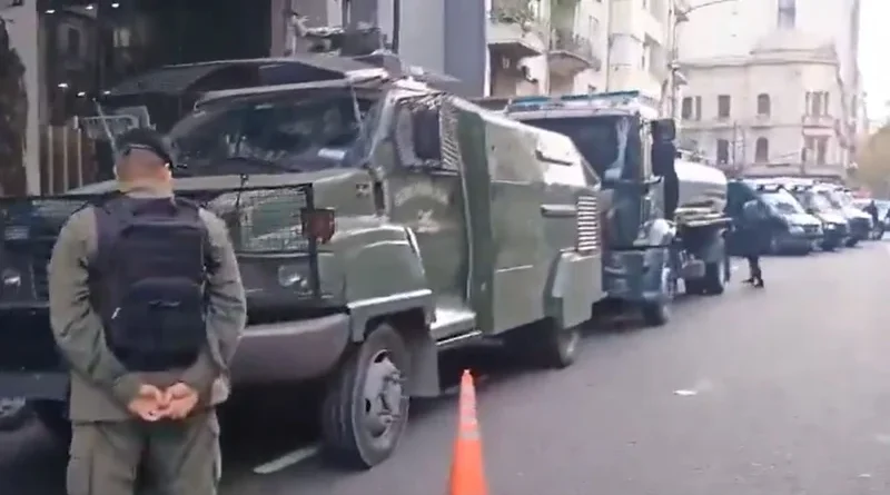 En un desmedido operativo policial, en las inmediaciones del Congreso los efectivos acordonan a los jubilados, trabajadores y residentes del Hospital Garrahan, científicos del Conicet, el colectivo Ni Una Menos y personas con familiares con discapacidad.