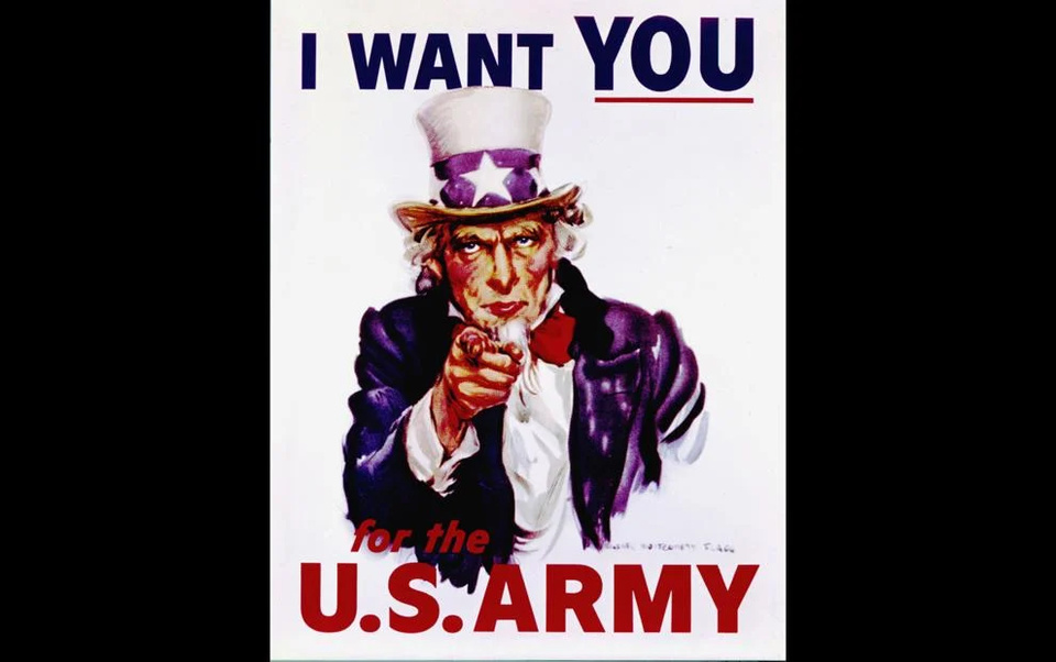 “¿Querés ser derective? Te buscamos para el DFI”, dice el texto que linkea con los afiches del “Tío Sam”, símbolo histórico del patriotismo de Estados Unidos, utilizado para reclutar hombres dispuestos a alistarse como soldados en las fuerzas armadas para los conflictos bélicos, desde la Primera Guerra Mundial en adelante.